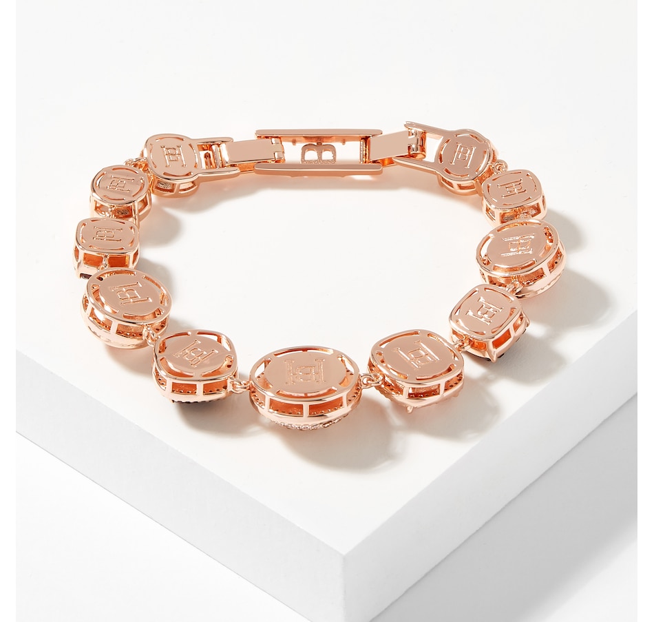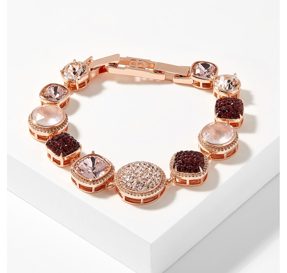 • (1) 10mm cushion shape, bezel set and faceted rose gold crystals