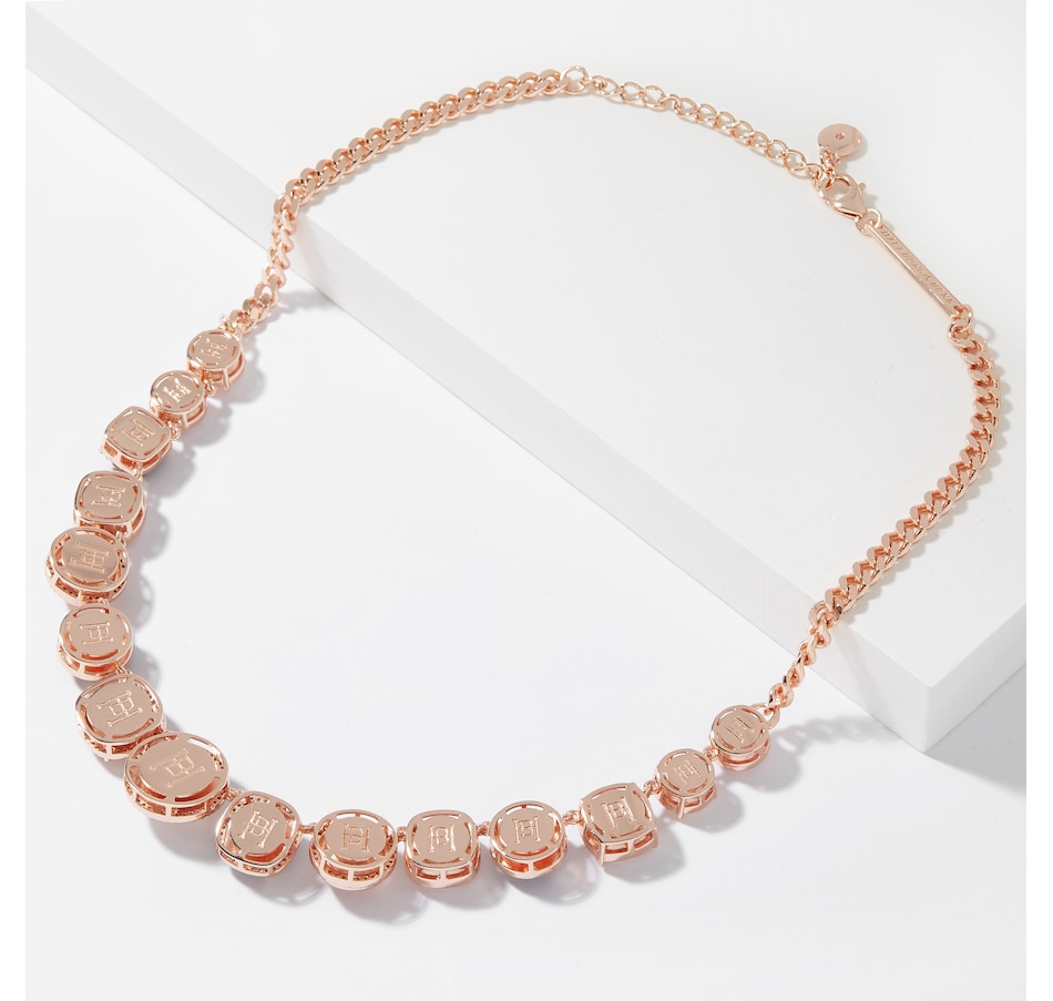 • (4) 9.5mm cushion shape, bezel set and faceted rose gold crystals