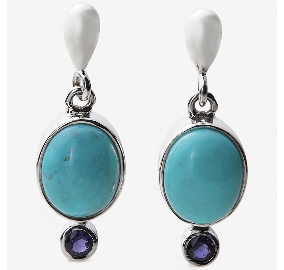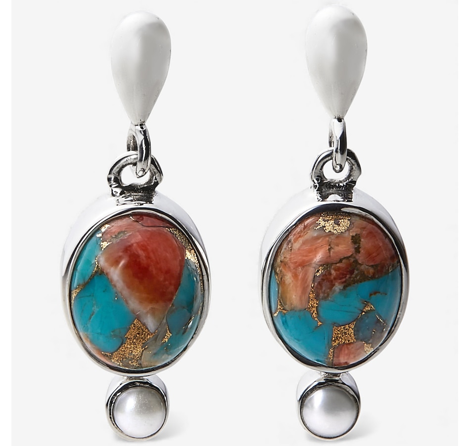 • (2) 8x10mm oval, bezel set gemstones — arizona turquoise (5.00 ctw), spiny oyster (6.00 ctw), white freshwater pearl (5.60 ctw)