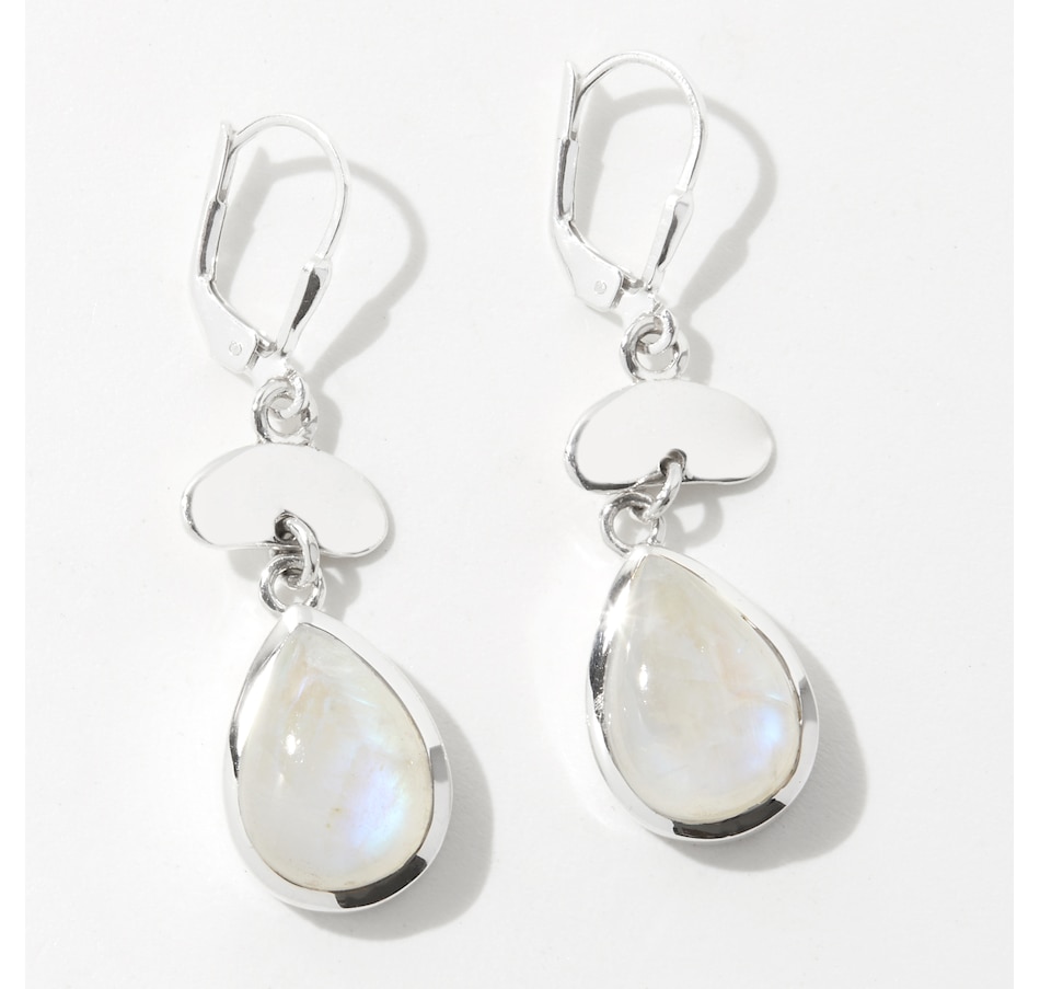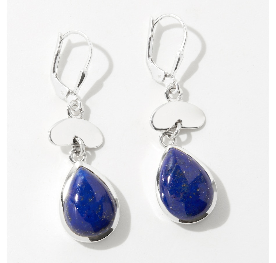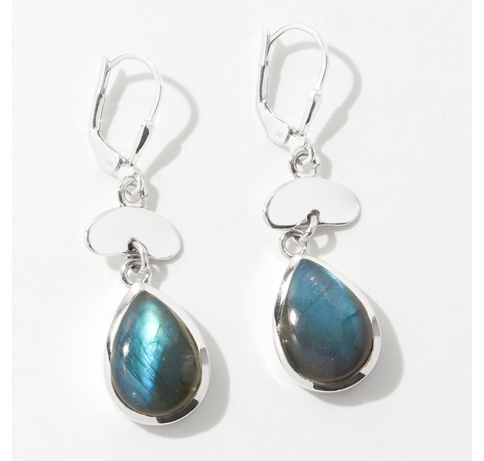 • (2) 10x14mm pear shape, bezel set & faceted choice of Gemstone: 12.00 av.ctw (lapis), 11.80 av.ctw (rainbow moonstone), 11.00 av.ctw (labradorite)