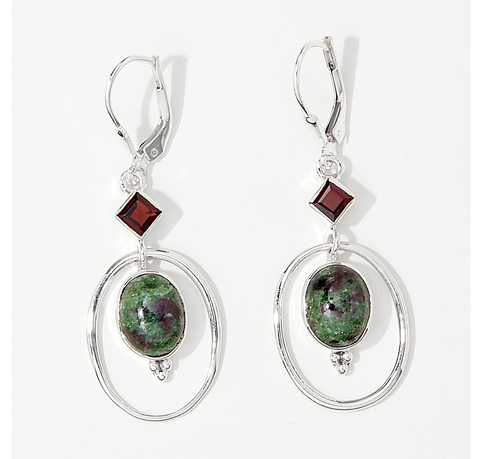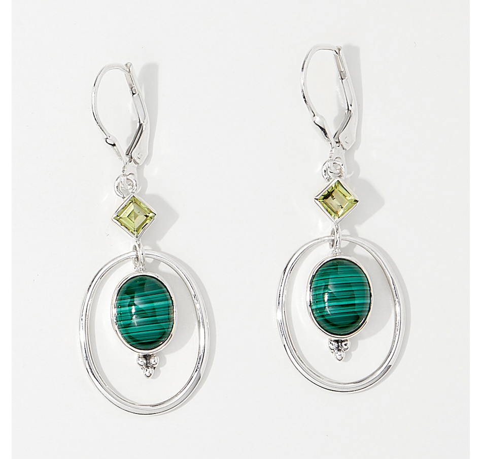 • (2) 8mm x 10mm oval shape, bezel set choice of gemstone: zoisete/garnet (6.00 av. ctw), malachite/peridot (8.00 av. ctw), or Peruvian blue opal/blue topaz (4.00 av. ctw)