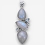 A multi‑stone teardrop and marquise composition creates elegant vertical flow in this sterling silver pendant from Himalayan Gems. With layered shapes and soft sheen from your choice of rainbow moonstone or labradorite, it’s a striking standalone piece suited for a simple chain.
