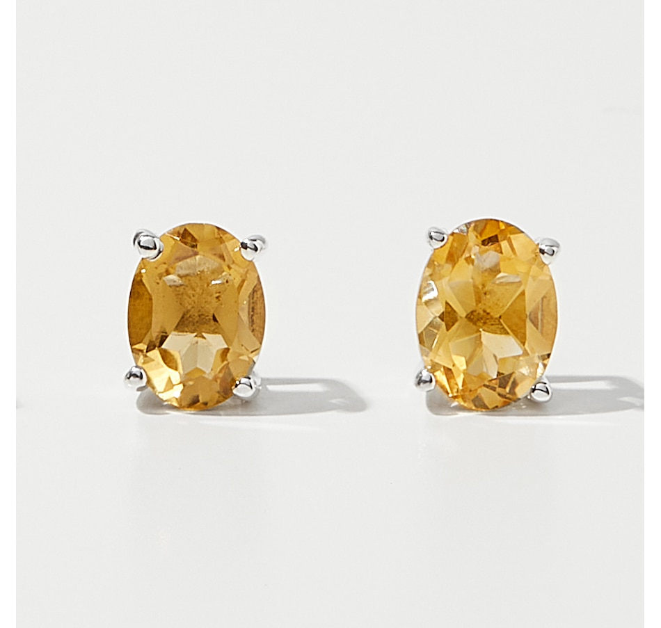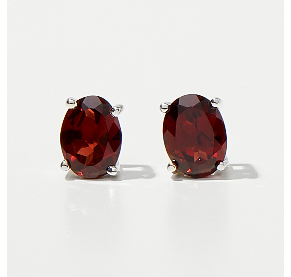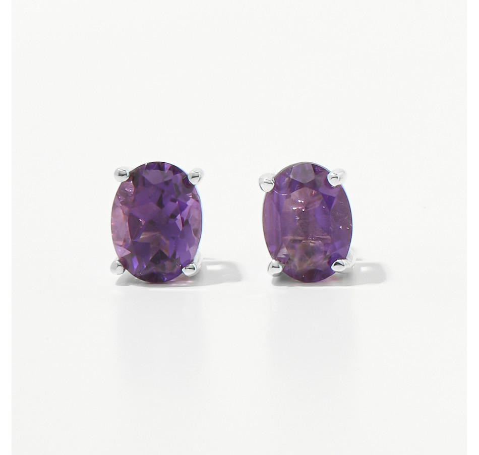 • (2) 6mm x 8mm oval shape, prong set and faceted choice of gemstone: amethyst (2.32 av. ctw), black spinel (3.12 av. ctw), blue topaz (3.24 av. ctw), citrine (2.00 av. ctw), garnet (3.00 av. ctw), or rainbow moonstone (2.40 av. ctw)