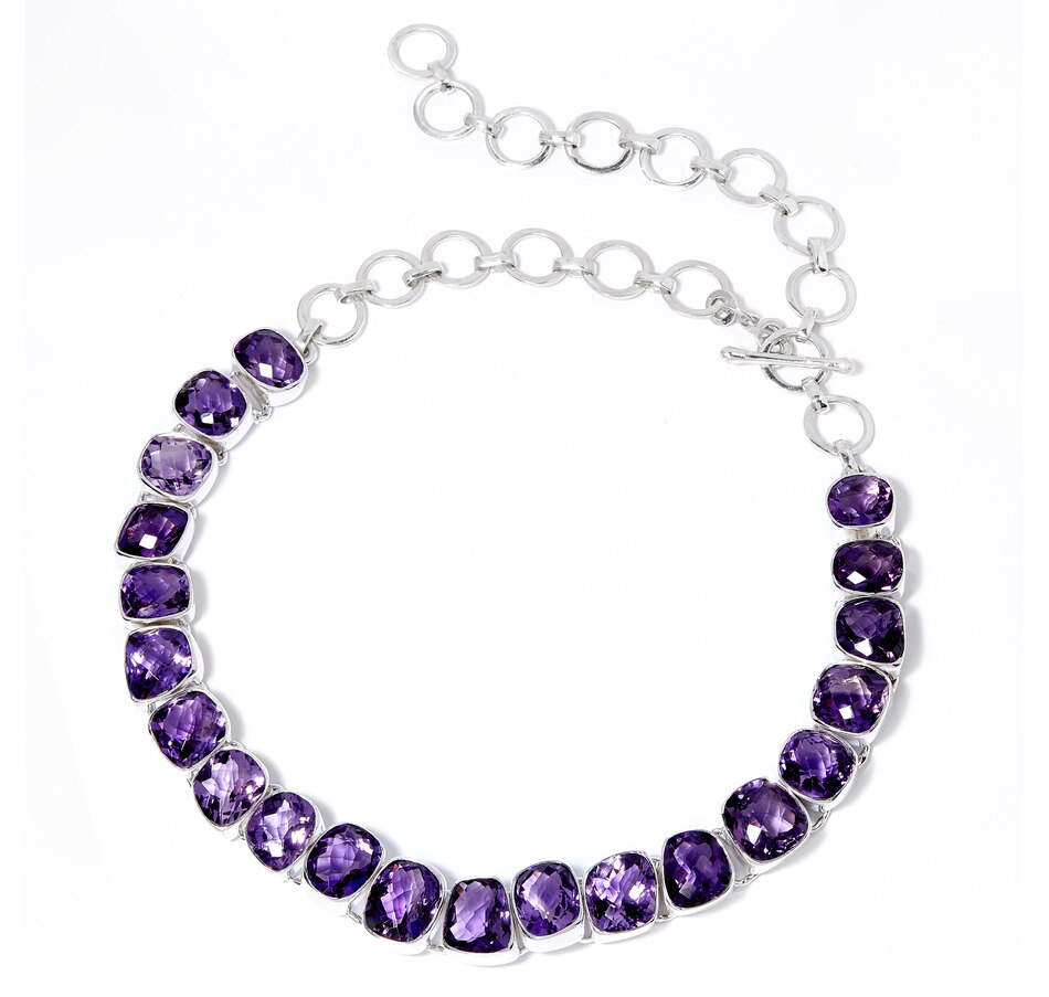 • AMY: (21) 9 x 11mm free form, bezel set & faceted Amethyst (134.40 av.ctw)
