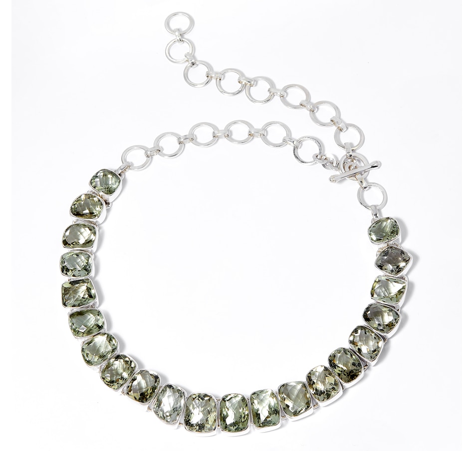 • GAM: (21) 8 x 10mm free form, bezel set & faceted Green Amethyst (140.70 av. ctw)