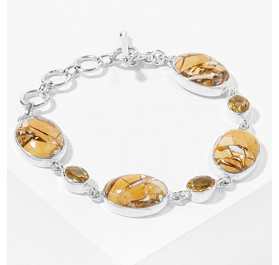 • (4) 12x17mm free form shape, bezel set brecciated mookaite (26.72 av. ctw)
