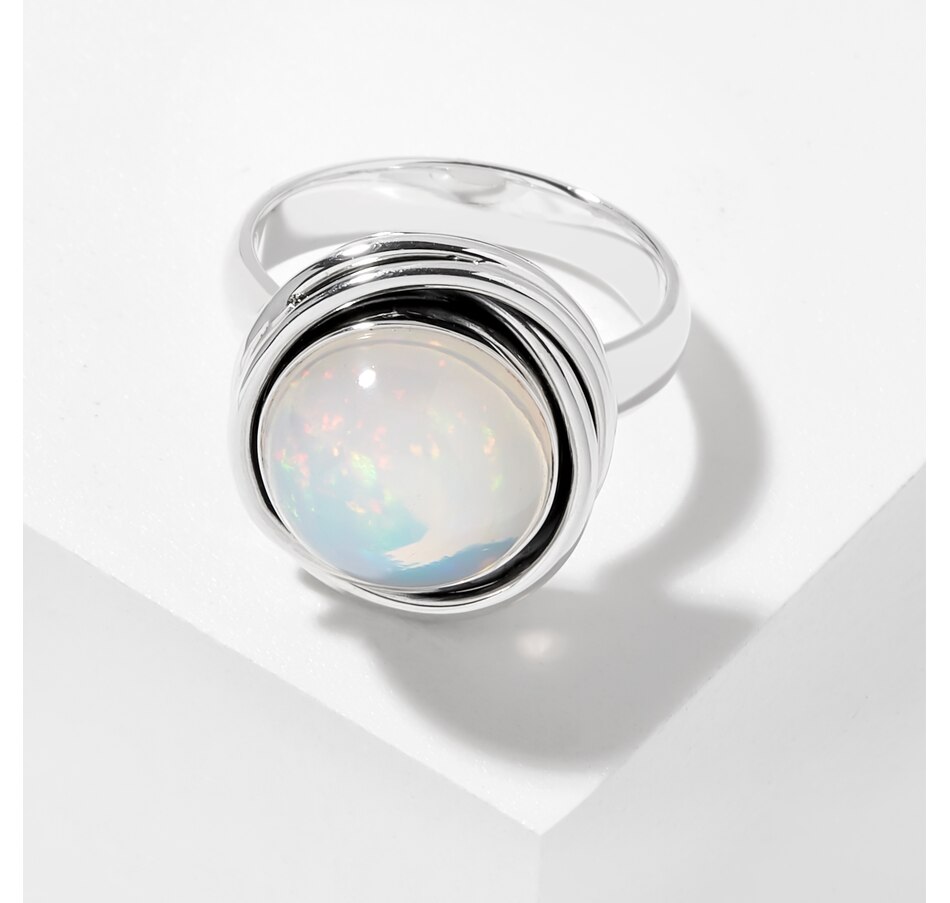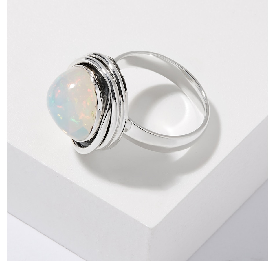 • (1) 12mm round cabochon, bezel set opal (4.00 av. ctw)