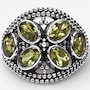 This bold dome-style ring from Himalayan Gems showcases six bezel-set faceted peridots arranged in a striking geometric pattern. Finished in polished sterling silver with a smooth undergallery, it delivers bright colour, dimensional design and comfortable wear.