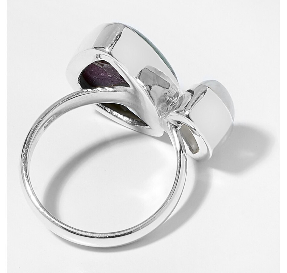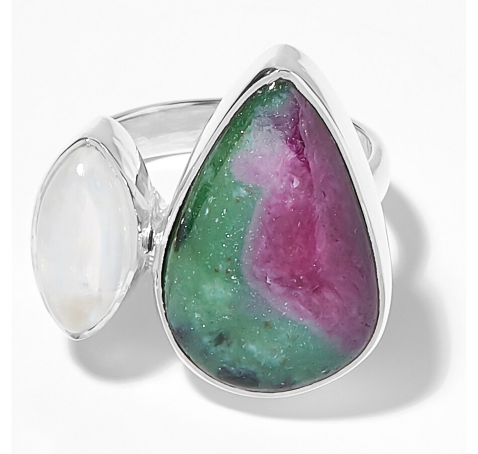 Sterling Silver Ruby Zoisite & Rainbow Moonstone Ring