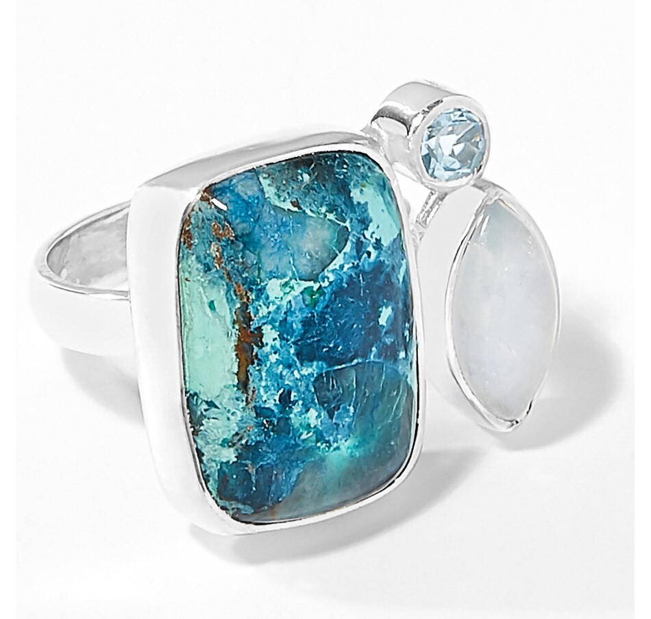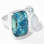 Sterling Silver Shatukatite, Rainbow Moonstone & Blue Topaz Ring