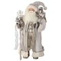 The 36" tall Winter White Santa from Holiday Memories is a stand-alone statement piece large enough to stand near the entrance greeting visitors and guests, or playing the star in a tabletop holiday display. He's bedecked all-around in luxe fabric, rich fur trim, and "jewels" with a snowflake and flowing ribbon on his staff and a bag of gifts over his shoulder.