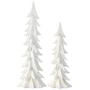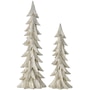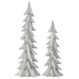 This set of two slender and shimmery luxe tree figures in silver finish will complement any colour theme and decor. This set is in staggered sizes (18" and 24") and look equally great together or separately as part of your holiday display. The subtle shimmer finish reflects light and adds warmth. The wintery tree design means you can put them out before the holidays and leave them out during the winter months for an extended display.