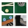 ● Color: Brown, Black, Green ● Material: Plastic, ABS, MDF board, Pine, Polyester Fleece ● Overall Size: 55.1" L x 24.75" W x 29.5" H ● Length of cue: 37" ● Diameter of Billiard Ball: 1.5" ● Tube Size Diameter: 24.75 x 1.2 mm ● Step Size: 10 1/2" L x 2 3/4" W ● Net Weight: 44 lbs ● Max. Weight: 330 lbs
