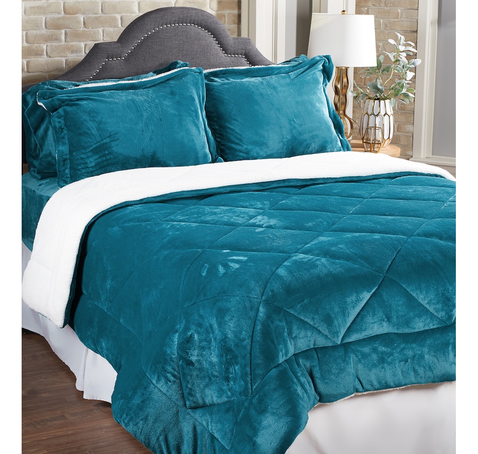 This luxuriously soft Micromink three-piece comforter set from Home Suite can add great style and warmth to any bedroom. Make a statement with coordinating sheets and throws to complete the look!