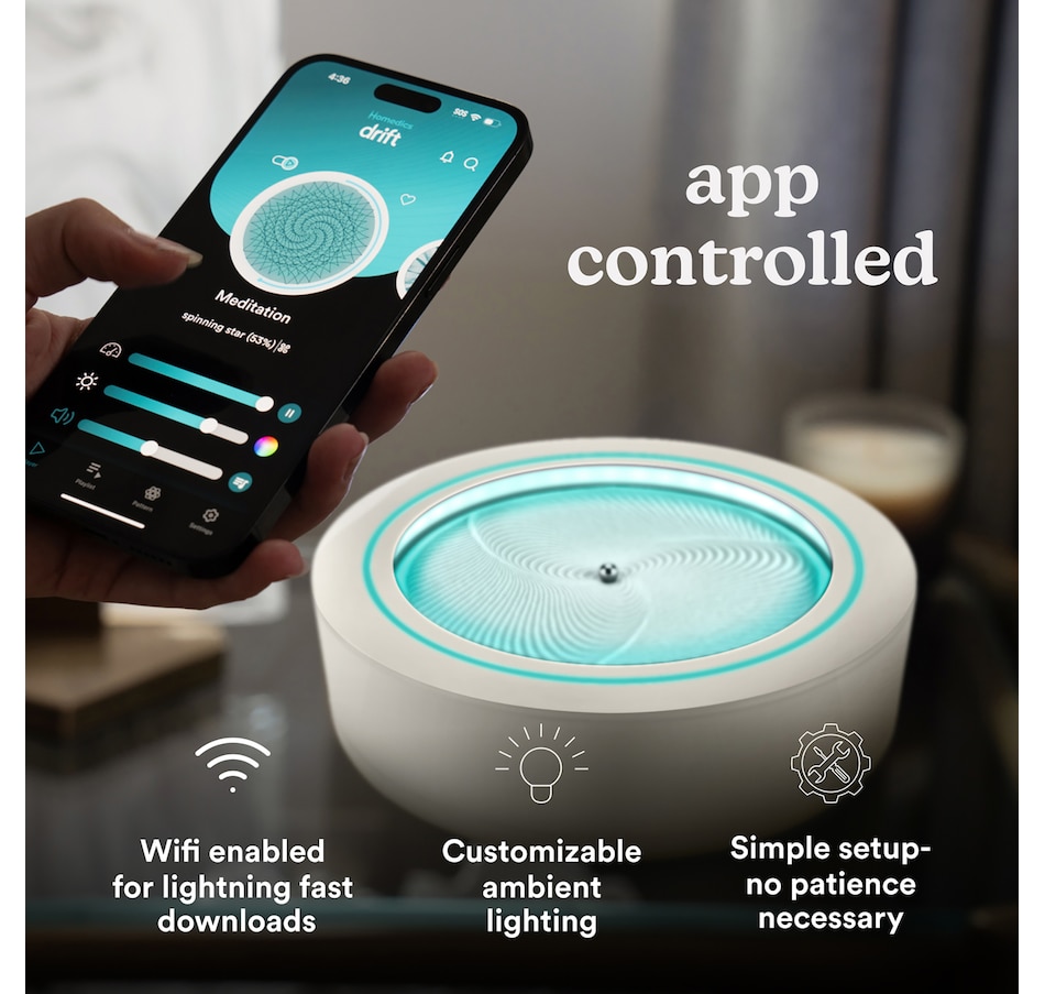 Immerse yourself in the serene tranquility of the Homedics Drift Sandscape, now available in a compact 11” size perfect for your desk or side table. Let the mesmerizing metal sphere take your eyes on a soothing journey through hundreds of ever-changing patterns, enhanced by new individually controlled RGBIC lights that create captivating displays such as sunsets, rainstorms, and enchanting light dances. It’s an experience unlike any other!