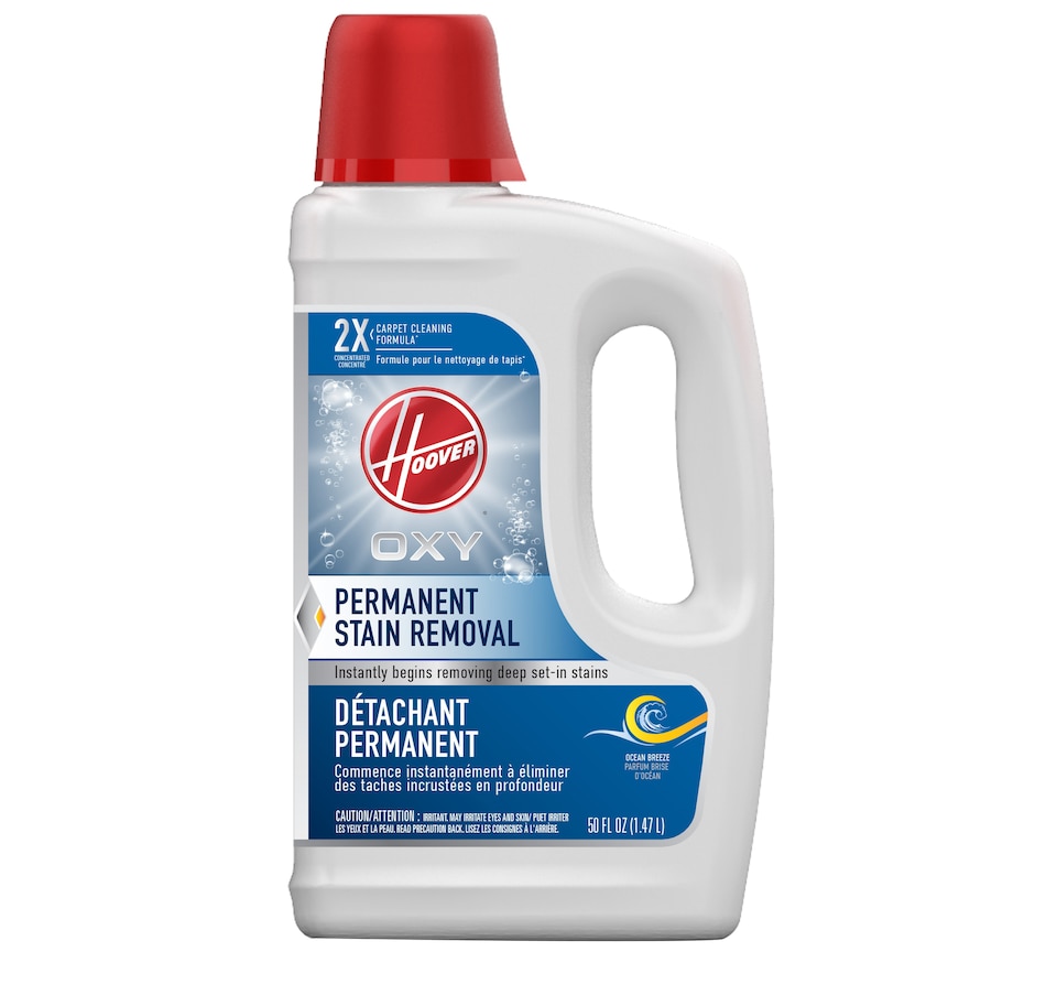 Hoover Oxy Carpet-Cleaning Formula is a fast-acting, stain-fighting formula that not only attacks, but also breaks down both old and new stains for easy removal. This solution uses oxy technology to neutralize pungent odours and and leave your carpets smelling fresh and clean with an ocean breeze scent.