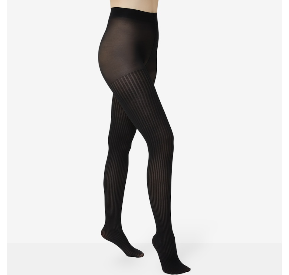 These opaque sheer ribbed tights offer shape control. The top features a subtle vertical ribbed pattern that elongates the legs while offering a fantastic balance of coverage and sheerness. Designed with a smoothing control top, these tights provide a gentle shaping and all-day comfort, making them a go-to for both everyday wear and an elevated look.