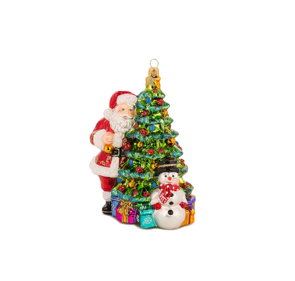 This vibrant and colorful ornament will stand alone on shelf/table or mantle and makes a lovely holiday show-piece. This ornament was originally sculpted in clay, then a glassblower created a delicate glass shape which was hand decorated by skilled artists in a 5-day process.