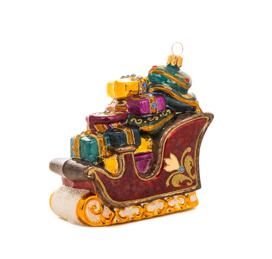 This ornament exudes richness and sophistication, and is perfect for adding a luxurious touch to your Christmas décor. It features a finely detailed figure of a sleigh, painted in deep, rich colours that instantly draw attention.