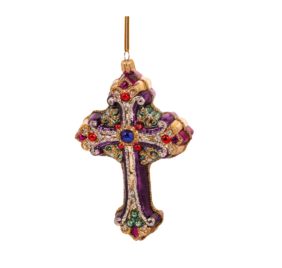 The rich jewel tones give this ornament a classically rich appearance, with each hue catching the light and reflecting it with a soft, luminous glow. To elevate its elegance further, the ornament is detailed with bold gold glitter. This glitter is applied in intricate, swirling patterns that wind around the ornament, creating an elegant contrast against the deep colours. The gold glitter is not just a subtle accent but a striking feature that boldly outlines and enhances the jewel tones, giving the ornament a rich, textured look. The glitter catches the light beautifully, making the ornament shimmer and sparkle from every angle. The combination of luxurious jewel tones and dazzling gold glitter creates a piece that feels both timeless and festive, perfect for adding a touch of opulence to any Christmas tree.