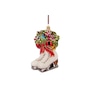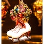 These beautifully crafted skates are exquisitely presented. They are coloured with a special cream-coloured paint and each boot lace and boot lace-hole is painstakingly detailed. The blades are coated in a matte silver with flecks of brown to give them the look of old metal, and the shoe heels are detailed to make them look like wood. They are topped with a big, bold red bow, trimmed in gold glitter and filled with candy canes, gifts and holly. Each one of these takes five days to make. It has a collector's charm attached for authenticity, and is carefully packaged in a lovely collector's box for easy gifting.
