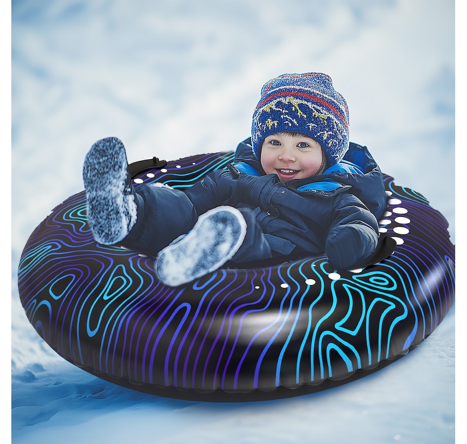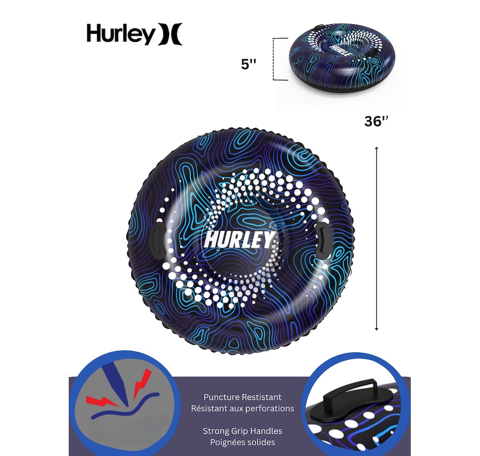 The Hurley 36" snow tube in abstract splatter design brings a splash of creativity to winter fun with its eye-catching, vibrant pattern. It offers a spacious and comfortable ride, perfect for zooming down snowy hills with ease! Crafted from rugged, puncture-resistant material, this snow tube is built to withstand the rigors of high-speed descents and challenging terrain. The abstract splatter design not only stands out on the slopes but also enhances visibility for added safety. Equipped with sturdy, reinforced handles for a secure grip, the Hurley 36" snow tube makes for a thrilling yet controlled ride. Ideal for both solo adventures and exciting races with friends, it combines durability, performance, and distinctive style for a superior winter experience.