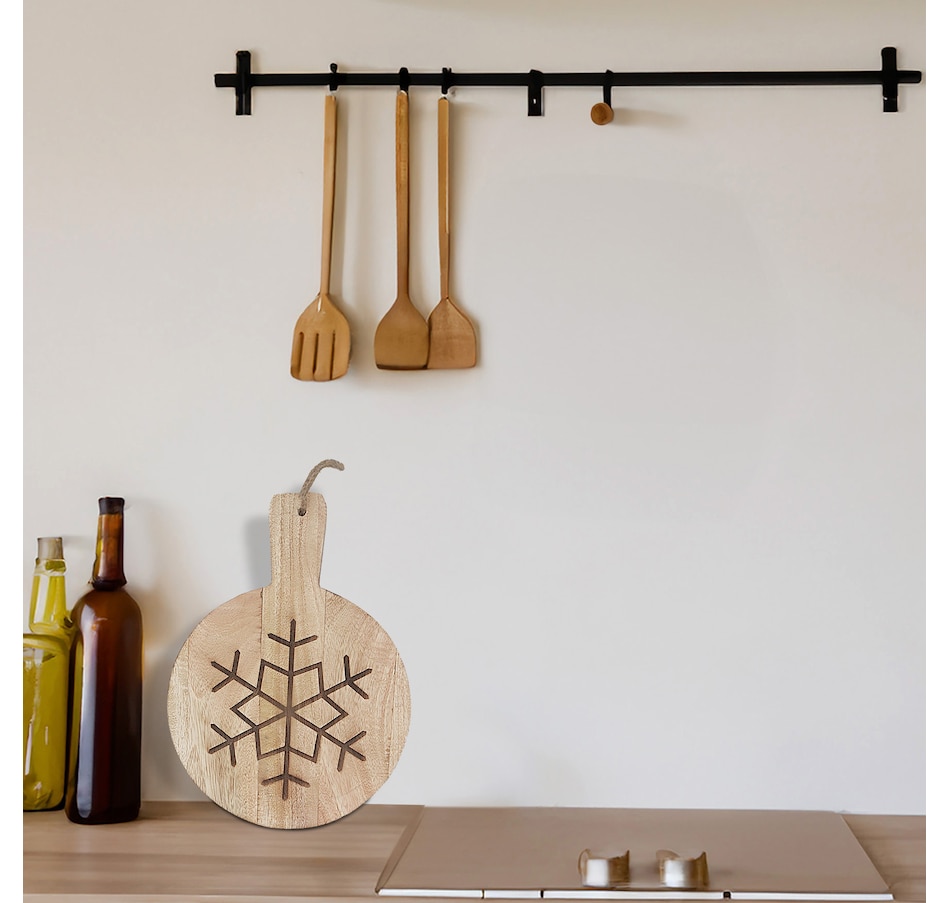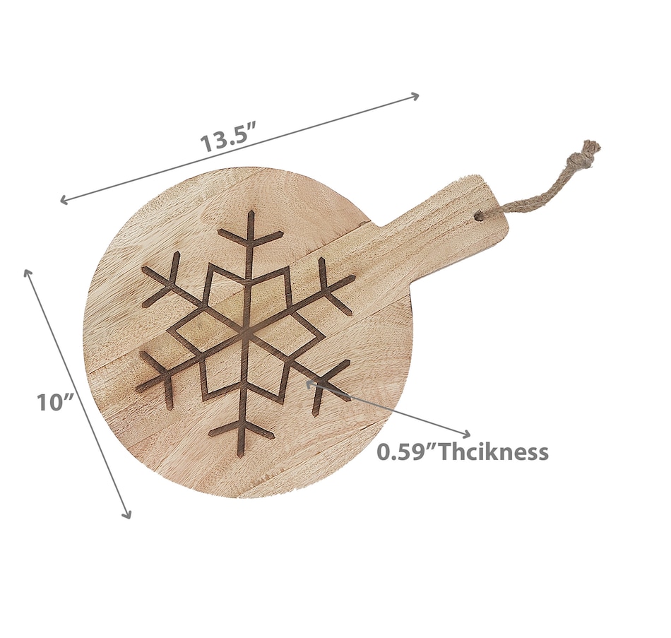 • IH Casa Décor 10" Mango Wood Round Snowflake Etched Cheese Board