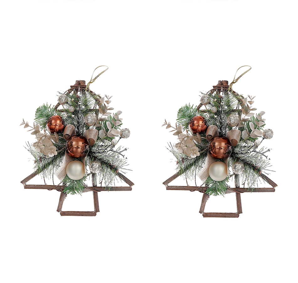 • IH Casa Décor 12" Rattan Tree Pine Hanging Décor (set of 2)