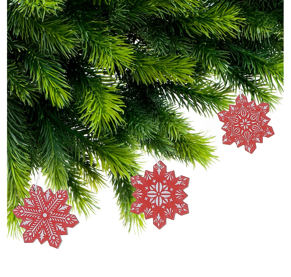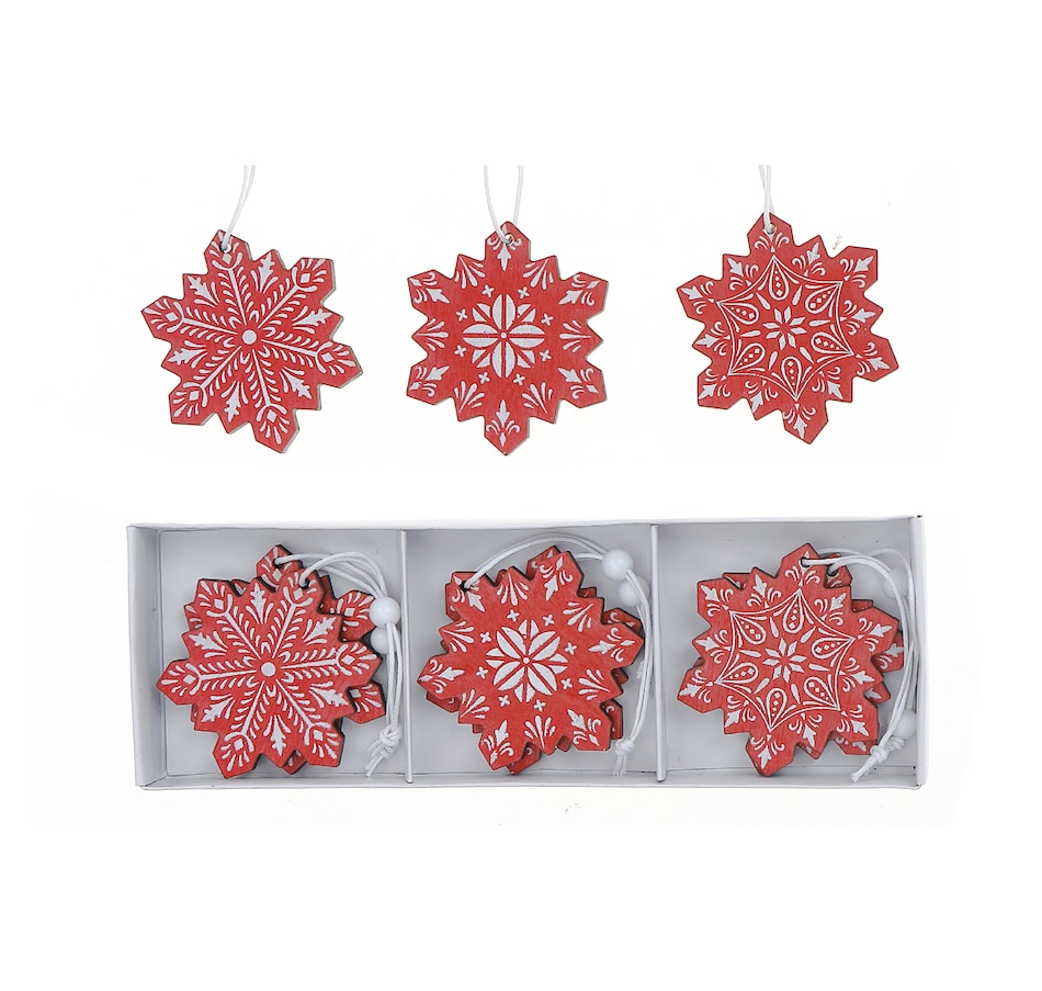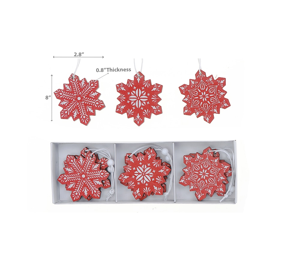 • IH Casa Décor 12-Pack Red and White Wooden Snowflake Ornaments