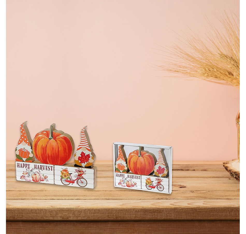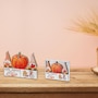 • Five-piece wooden block set with gnome and pumpkin-themed designs, perfect for autumn and Thanksgiving décor
