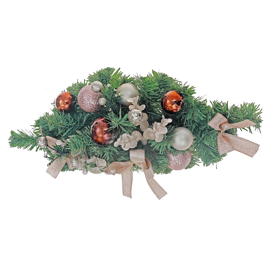 Bring some real festive charm to your holiday décor with this bows and balls pine swag artificial flower decor. Designed to capture the essence of the season, this beautifully crafted faux flower décor features lush pine branches, vibrant bows, and ornamental balls, creating a cheerful and elegant holiday accent. Whether displayed on your door, mantel, staircase, or tabletop, this multi-coloured arrangement adds warmth and style to any space. Its compact size makes it perfect for decorating smaller areas while still making a big impact.