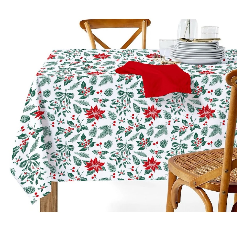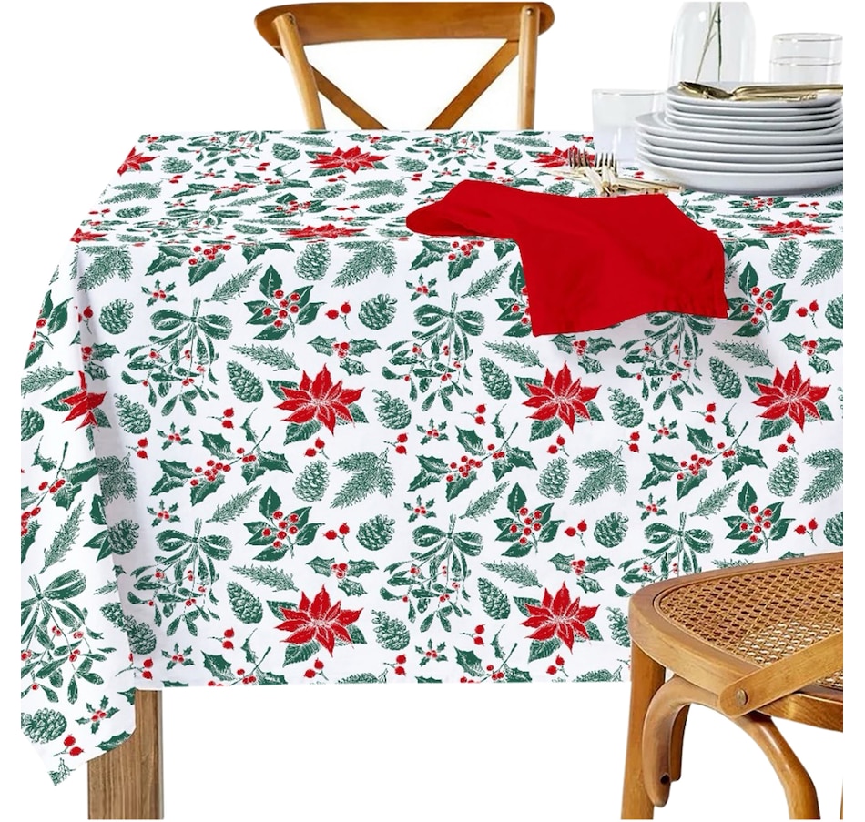 • IH Casa Décor Cotton Table Cloth (60" x 90", mistletoe poinsettia)