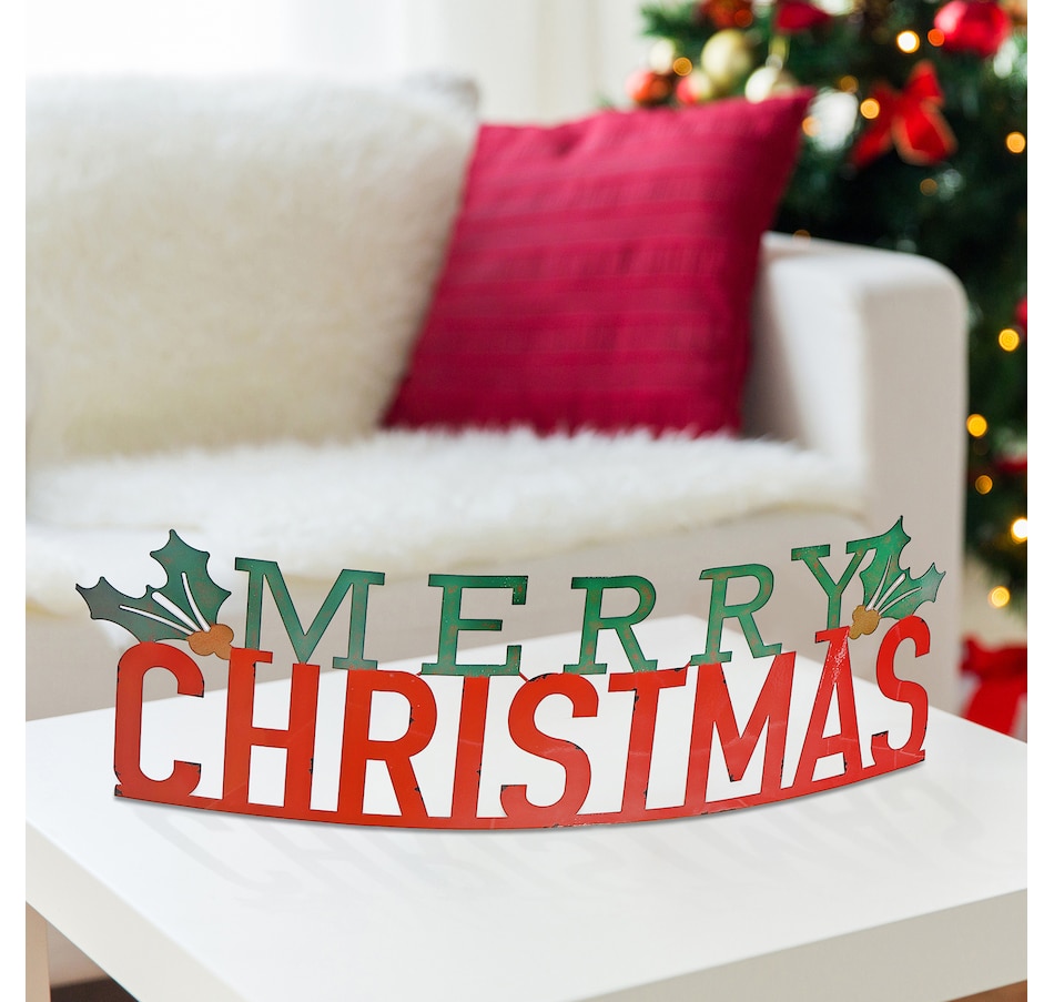 Give your home or office a touch of elegance with this curved metal table sign from IH Casa Décor. Made from the high-quality metal, this sign features a sleek curved design and is perfect for adding a festive touch to any space. The beautiful font and "Merry Christmas" inscription will surely bring joy to anyone who sees it. Place it on your table, shelf or desk for an added decorative element that exudes sophistication and holiday cheer.