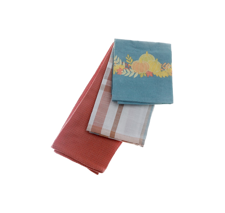 • IH Casa Décor Kitchen Towel (plaid with pumpkin patch, set of 3)