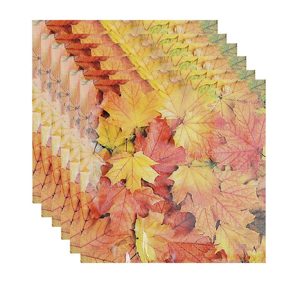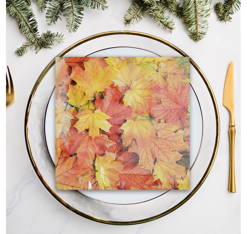 • These soft and absorbent 3-ply napkins feature a vibrant Autumn Leaves design, adding a festive autumn touch to your table setting.