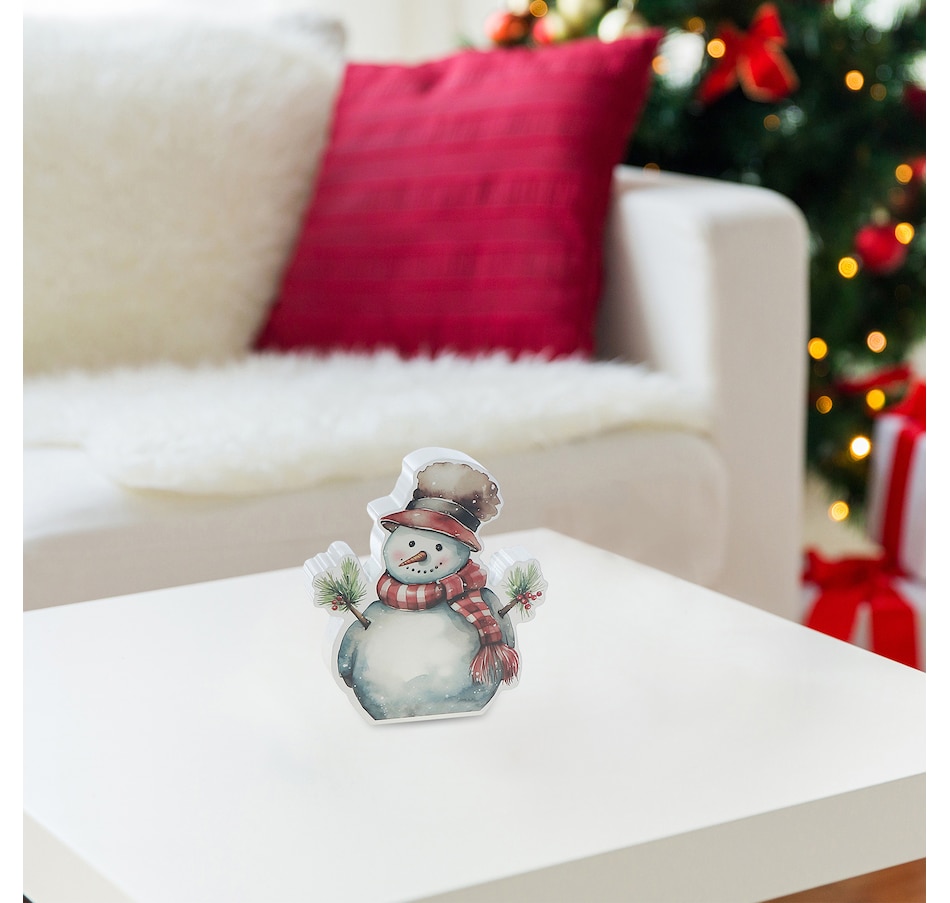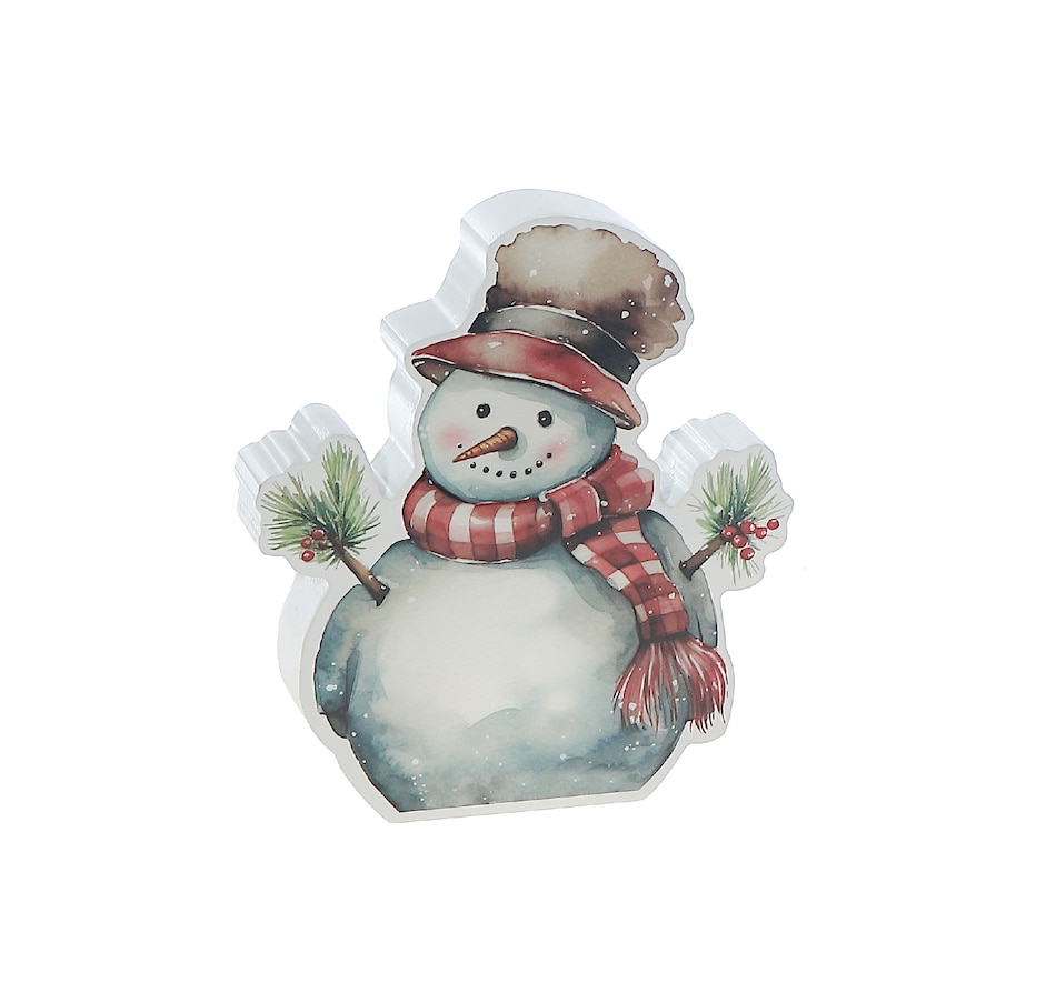 • Festive tabletop block showcases a snowman design, offering a playful and heartwarming seasonal touch