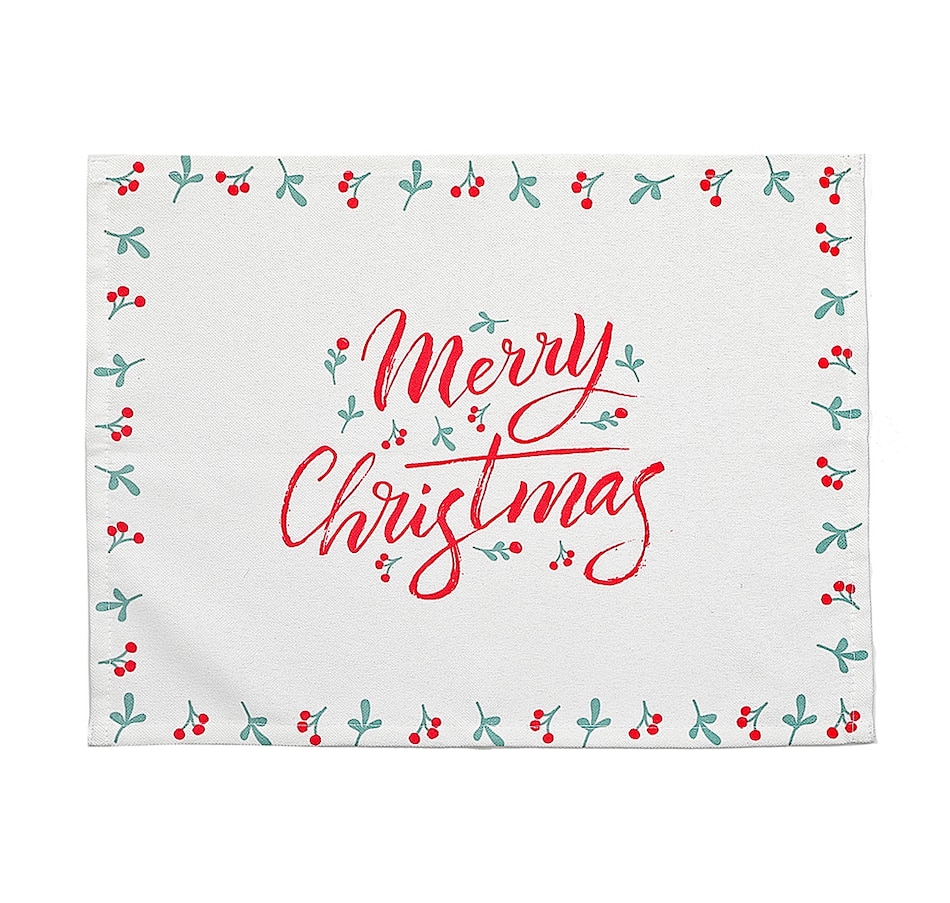 • IH Casa Décor Merry Christmas Holly Berries Border Placemat (set of 12)