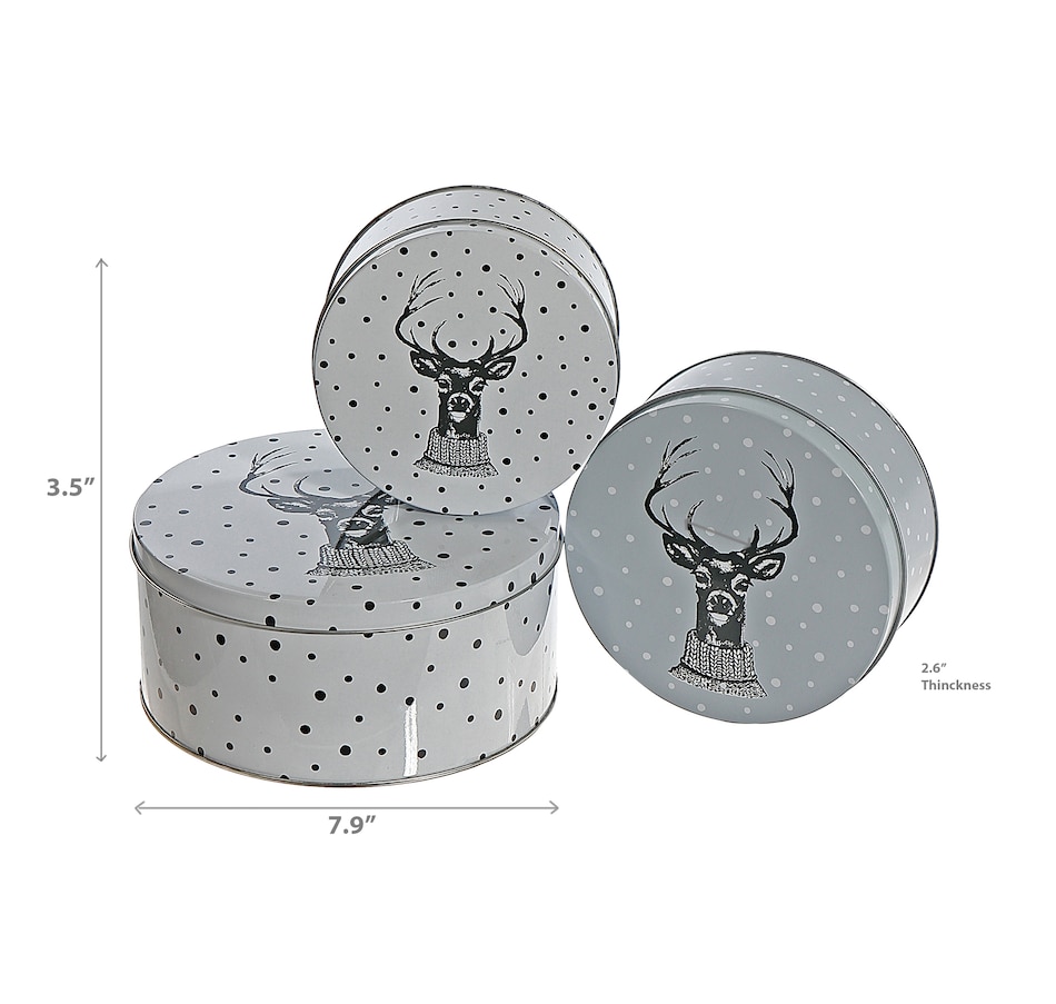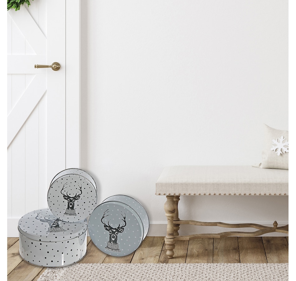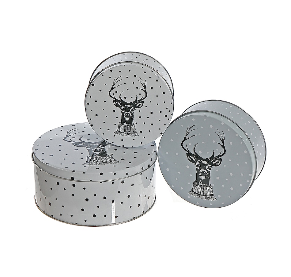 IH Casa Décor Nesting Round Tin Boxes (reindeer head, set of 3)
