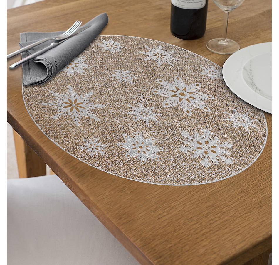 • IH Casa Décor PVC Round Cut-Out Snowflake Placemat (silver, set of 12)