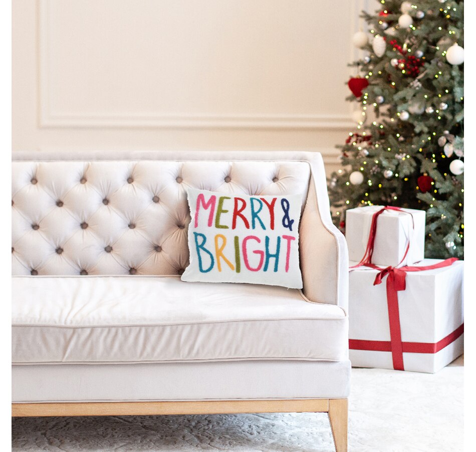 Transform your living space into a cozy winter wonderland with this cotton embroidered cushion with a "Merry & Bright" design from IH Casa Décor. Made from high-quality cotton, this beautiful embroidered cushion is both comfortable and durable, and adds a touch of festive charm to any room, while the multicolour details make it versatile enough to match any décor.