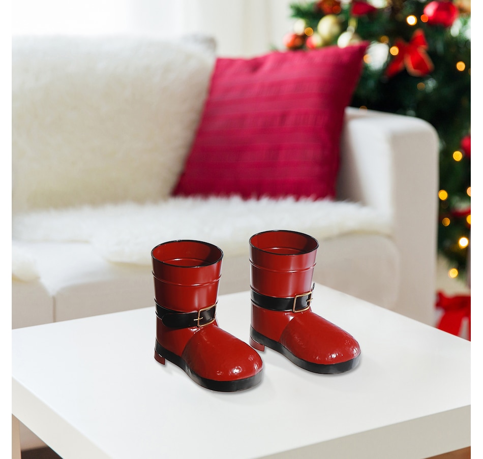 • IH Casa Décor Red Metal Santa Boots Planter (Set Of 2)