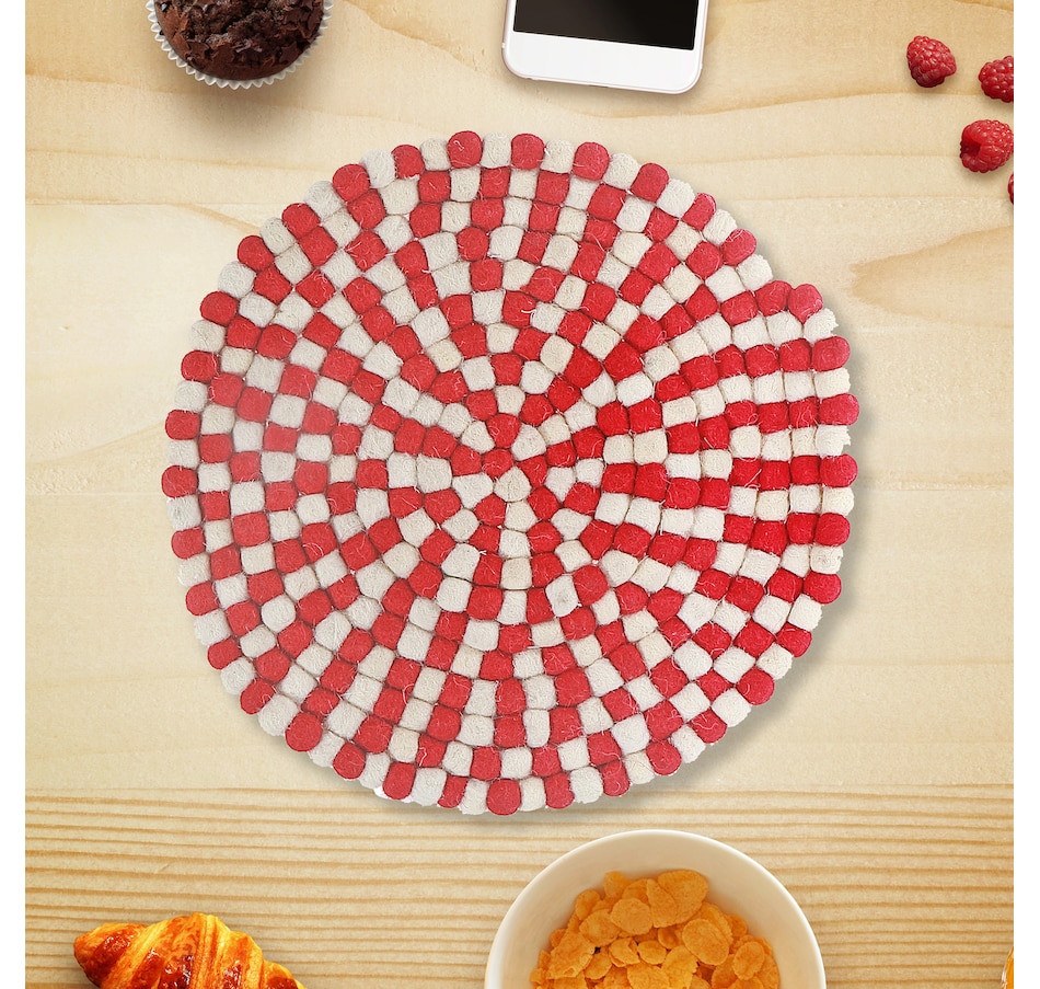 • IH Casa Décor Round Felt Ball Trivet (red and beige)