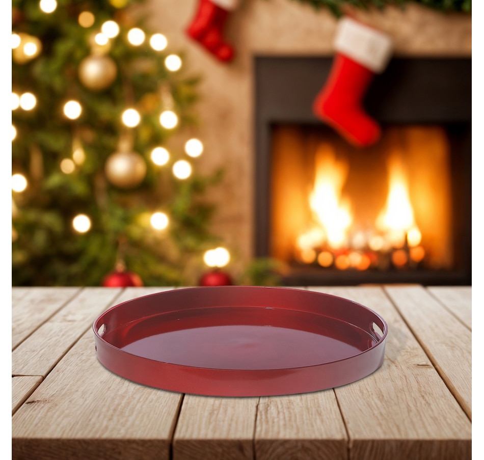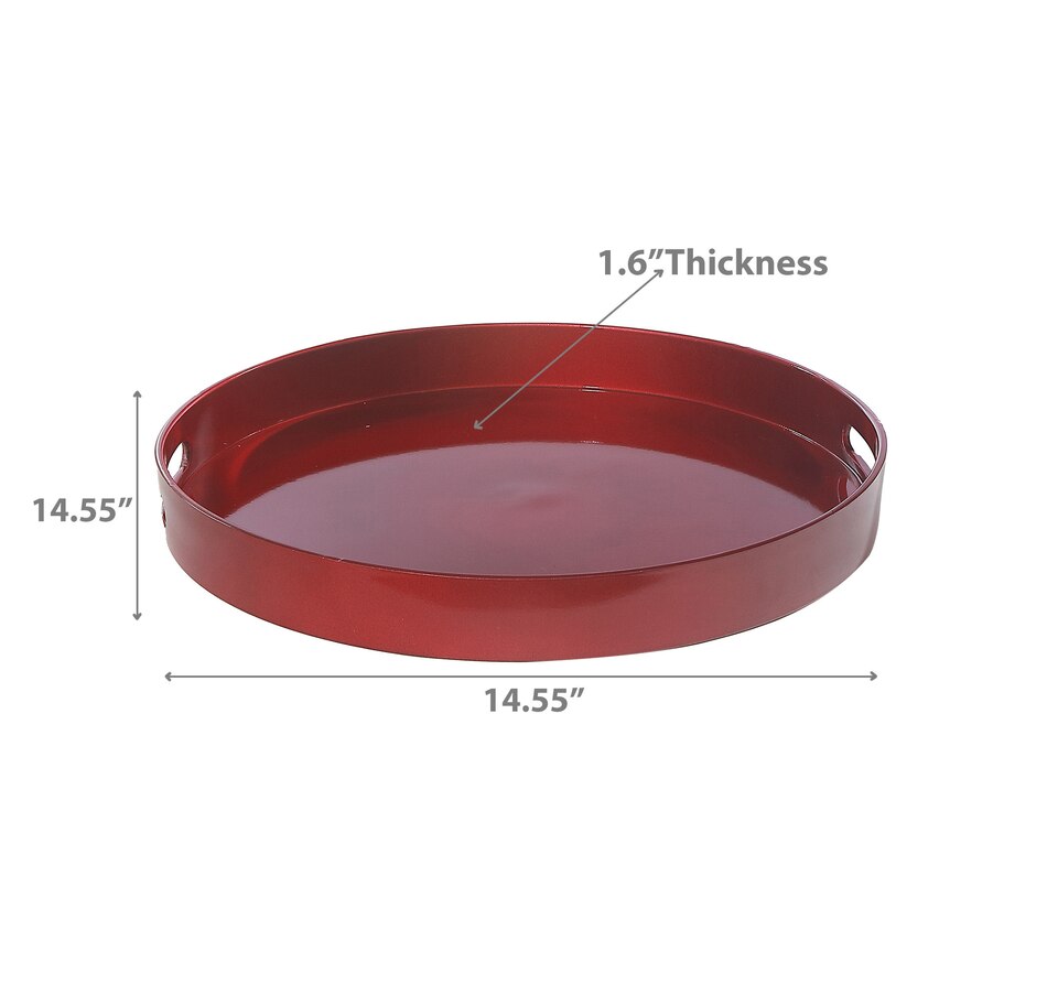 Bring a stylish and functional addition to your kitchen or dining space with this round serving tray from IH Casa Décor. Crafted from melamine, this tray is lightweight yet durable, for long-lasting use, and the side loop handles provide a secure grip for easy carrying, making it ideal for both casual gatherings and formal events. Its charming red colour adds a refined charm, effortlessly complementing any tabletop.