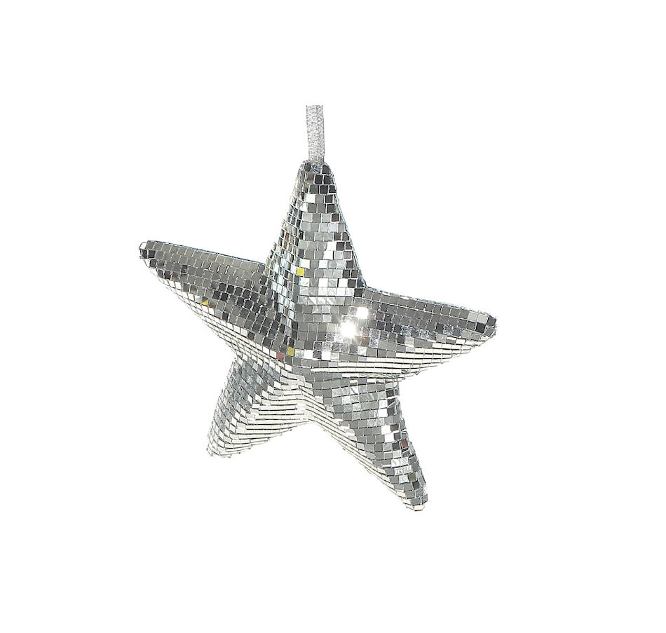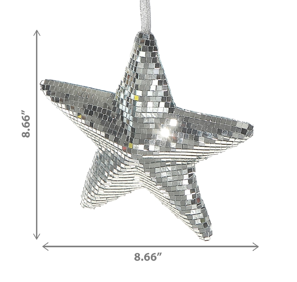 • Covered in tiny mirrored tiles, this star ornament catches and scatters light, bringing a glamorous disco-inspired sparkle to any space