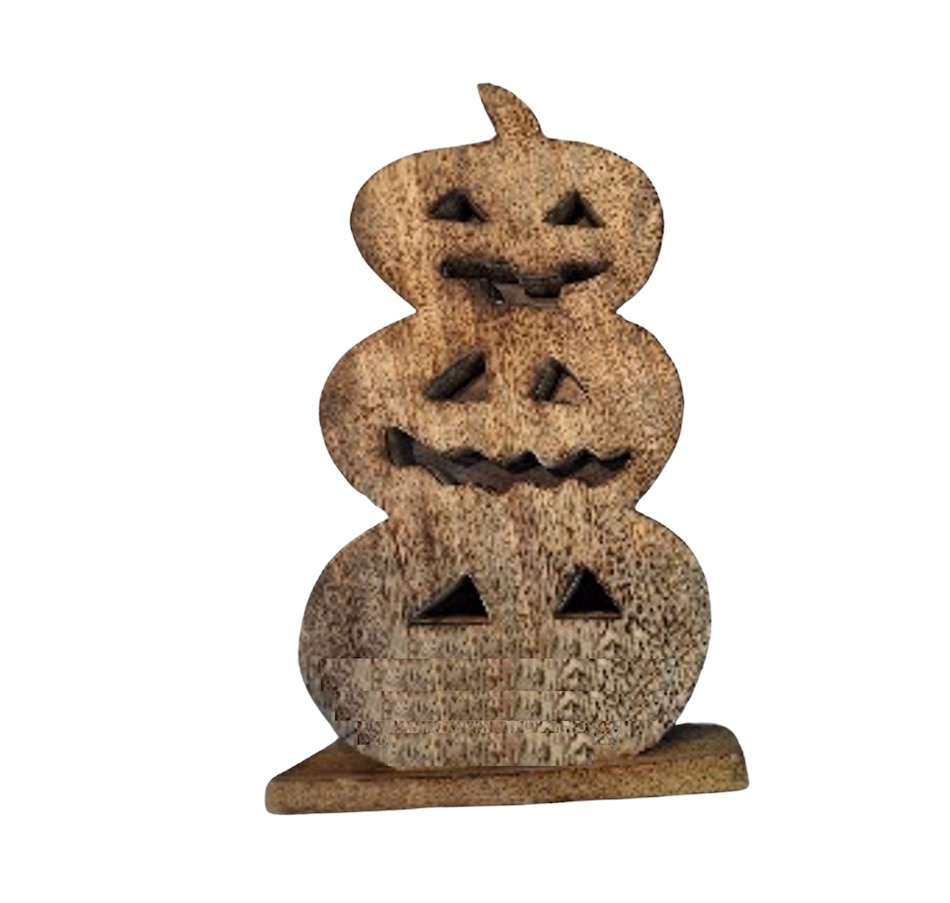 • IH Casa Décor Wood-Carved Triple Jack-O-Lantern