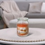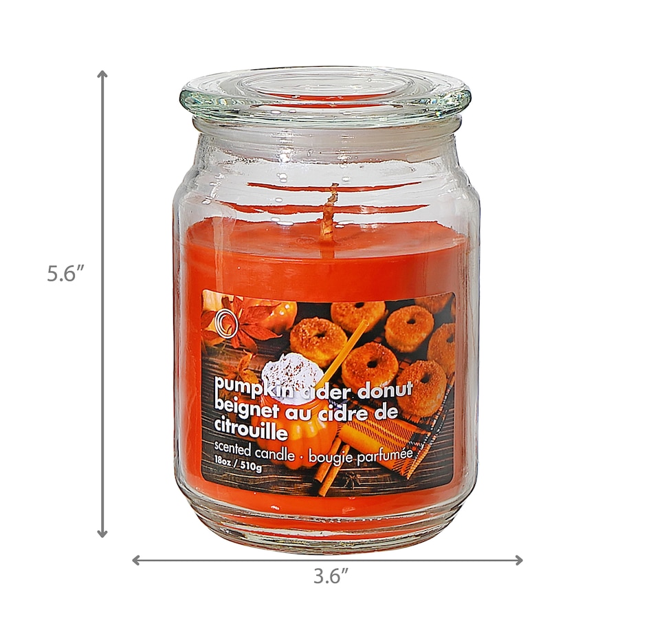 Let your home undergo a delightful transformation with this 18-ounce scented jar with glass lid. It leaves a long-lasting fragrance, while the high-quality scented wax burns cleanly and evenly. Encased in a beautiful glass jar with a lid, this candle fills your space with the charming scent of freshly baked pumpkin donuts. The fragrance is a captivating blend of sweet pumpkin accord and a hint of sugary donut glaze.