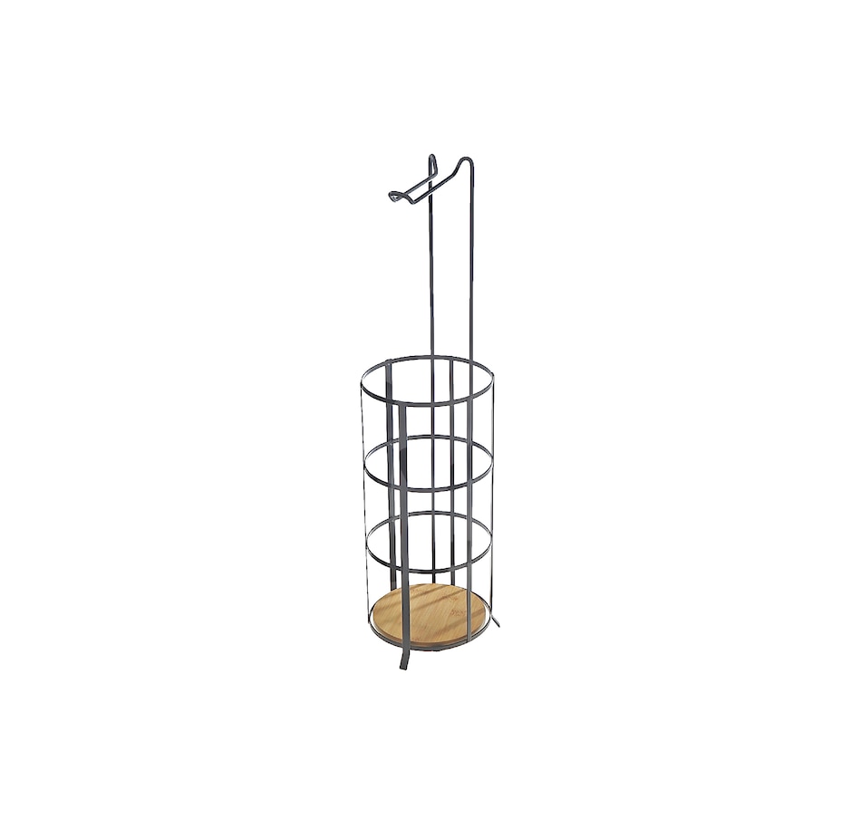 Organize your bathroom with this stylish roll paper holder, featuring a sturdy bamboo bottom and durable iron construction. Designed to hold up to four paper rolls, this elegant accessory combine functionality with a touch of natural charm. The iron material means long-lasting use, while the bamboo bottom adds a sleek, eco-friendly element to your space. Keep your essentials neatly stored and easily accessible with this kitchen roll holder.