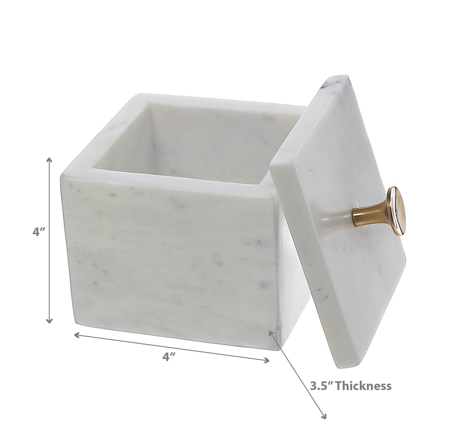 Offering both style and functionality, this marble canister with its lid and gold knob is ideal for storing kitchen essentials, bathroom accessories, or office supplies. In an elegant white, it features a compact shape and size that seamlessly fits into any space, enhancing your organization and aesthetic. Elevate your home décor with this storage canister.