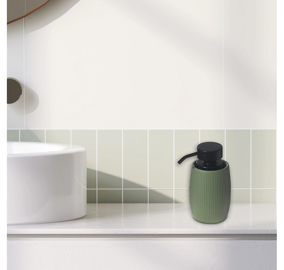 Give your bathroom countertop a posh look using this soap dispenser with plastic pump. Crafted from dolomite, it brings a hint of urbane sophistication. The warm green hue of the dispenser accompanies the durability of a reliable plastic pump for smooth dispensing. You can fill it with your favourite liquid soap, lotion, or even hand sanitizer for practicality and convenience.