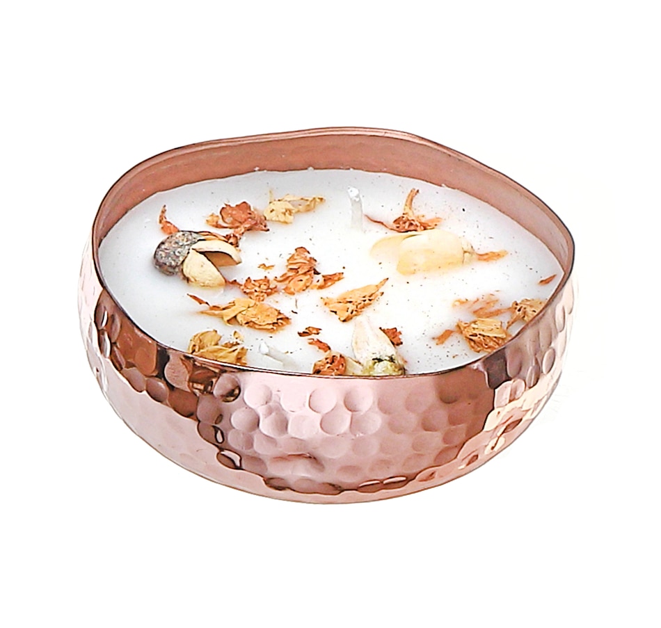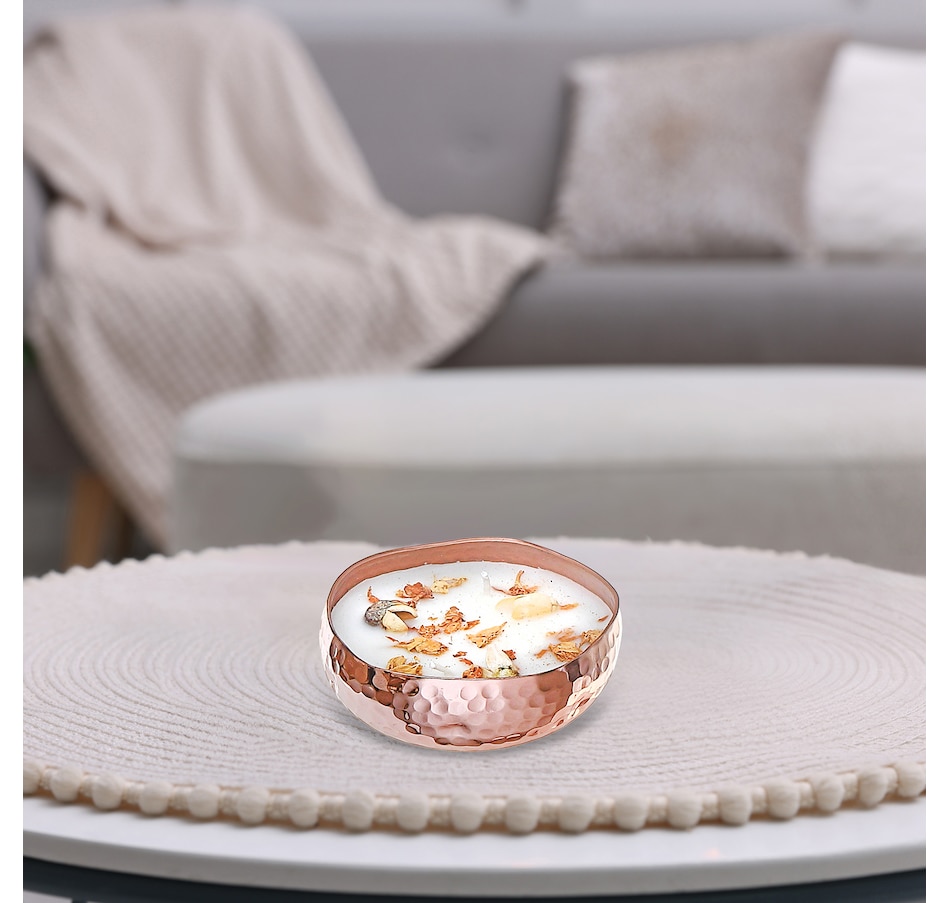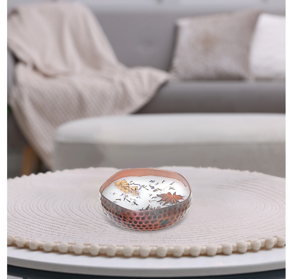 Illuminate your space with the captivating scent of aqua oud in this soy 5.29-ounce two-wick metal dish candle. Housed in a trendy copper-coloured aluminum dish, this candle not only offers a delightful fragrance but also elegance to your decor. The two wicks of the fragrance candle enhance the scent throw, making for a long-lasting aromatic experience. Its charming design and soothing scent bring warmth and tranquility to any room, making it a beautiful addition to your home.